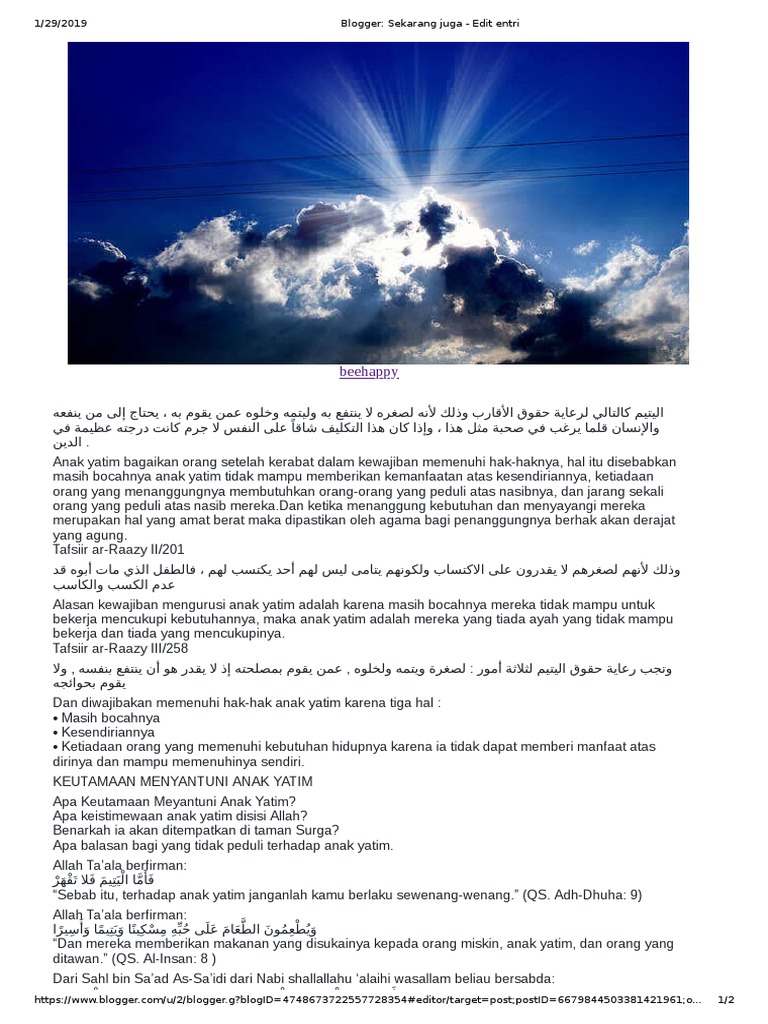 Keutamaan dalam hadits ini belaku bagi orang yang meyantuni anak yatim dari harta orang itu sendiri atau harta anak yatim tersebut jika orang itu benar benar yang mendapat kepercayaan untuk itu. Al maun 1071 3 rasulula bersabda saya dan orang yang menanggunganak yatim atau lainnya di surge dan orang yang membantu janda dan orang miskin seperti pejuang. Skip navigation sign in.