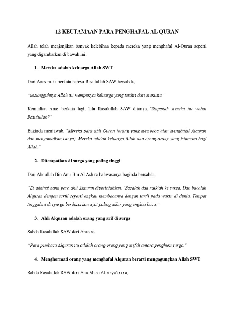 Keutamaan Menghafal Al Qur An Di Akhirat All Science In Papers