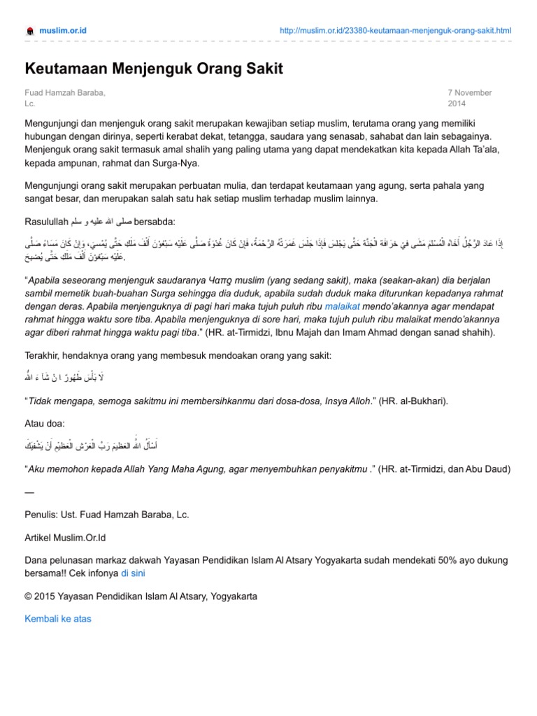 Muslim Or Id Keutamaan Menjenguk Orang Sakit Pdf Document