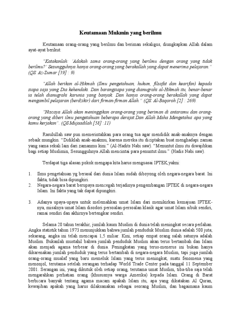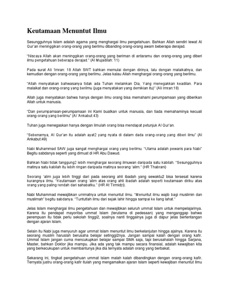 Doc Hadits Tentang Ilmu Pengetahuan Dan Keutamaan Orang