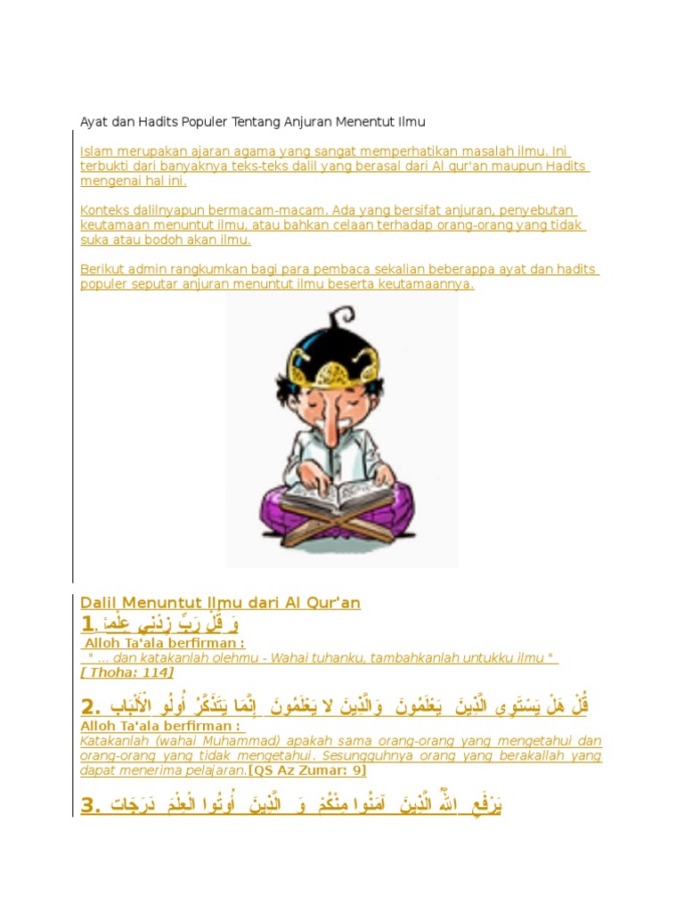 Hadis Tentang Manfaat Menuntut Ilmu Zeni Rochman